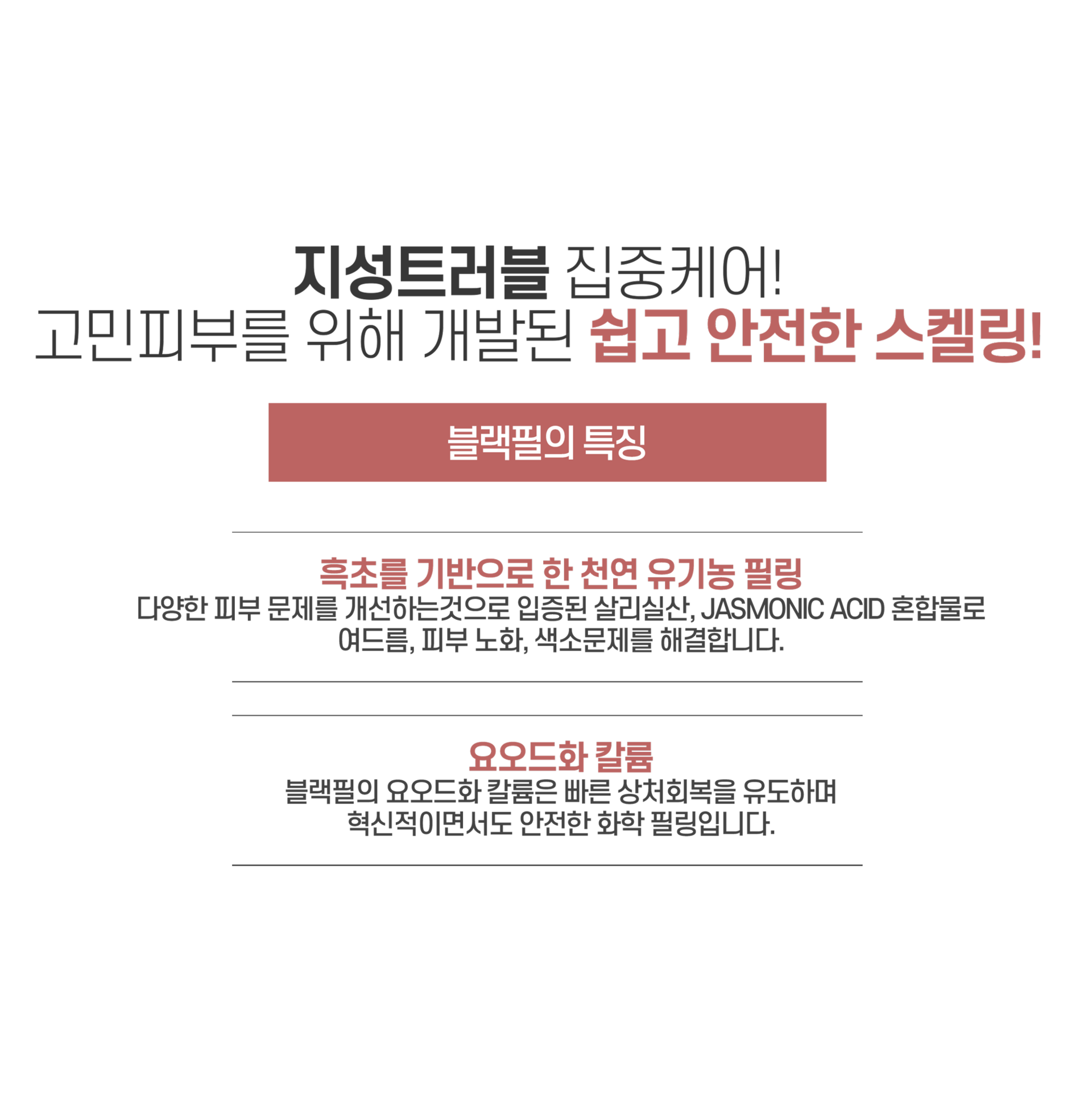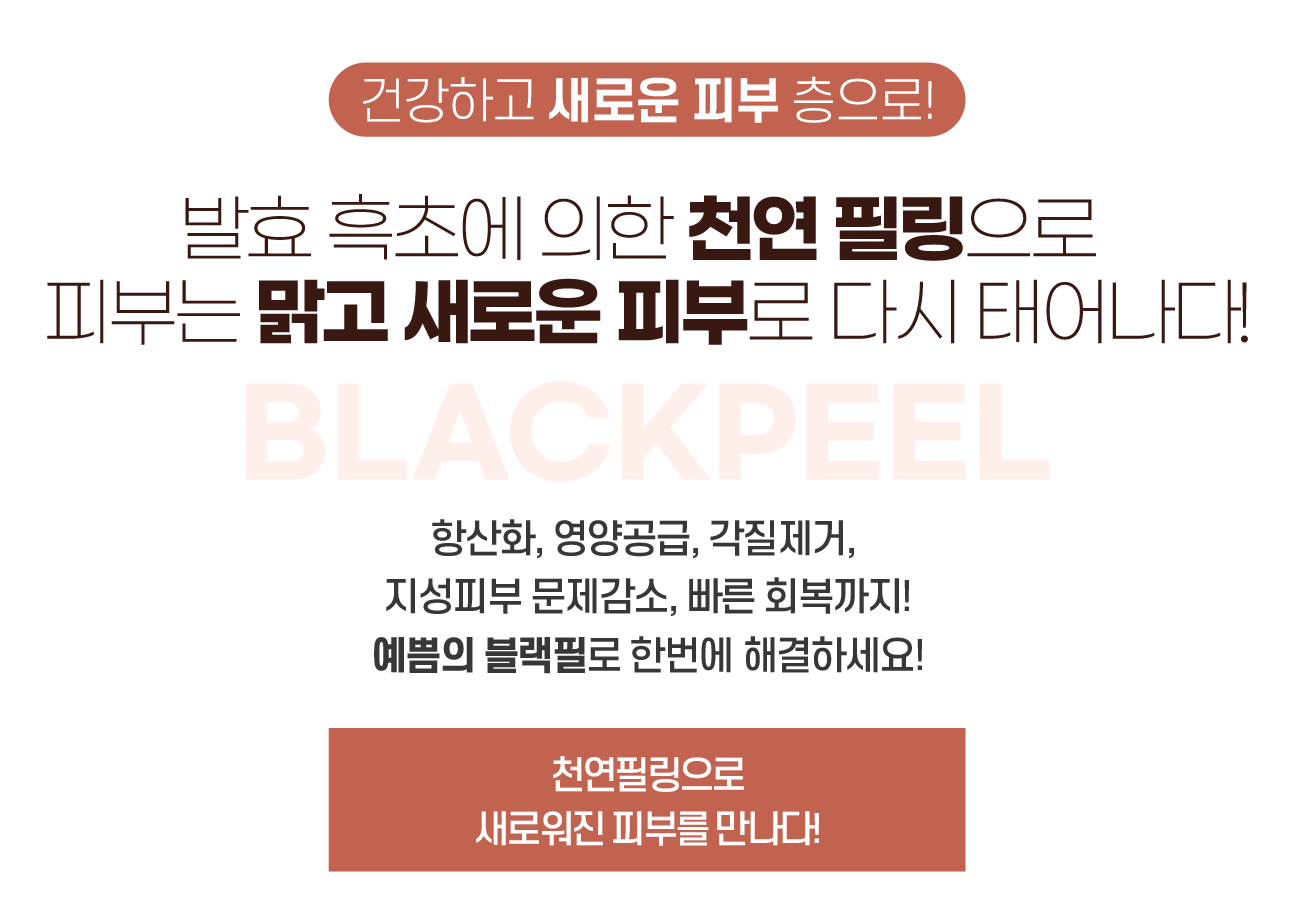 블랙필은 건강음료인 발효식초를 베이스로 한 천연 박피제입니다. 혁신적이고 안전한 화학 필러!