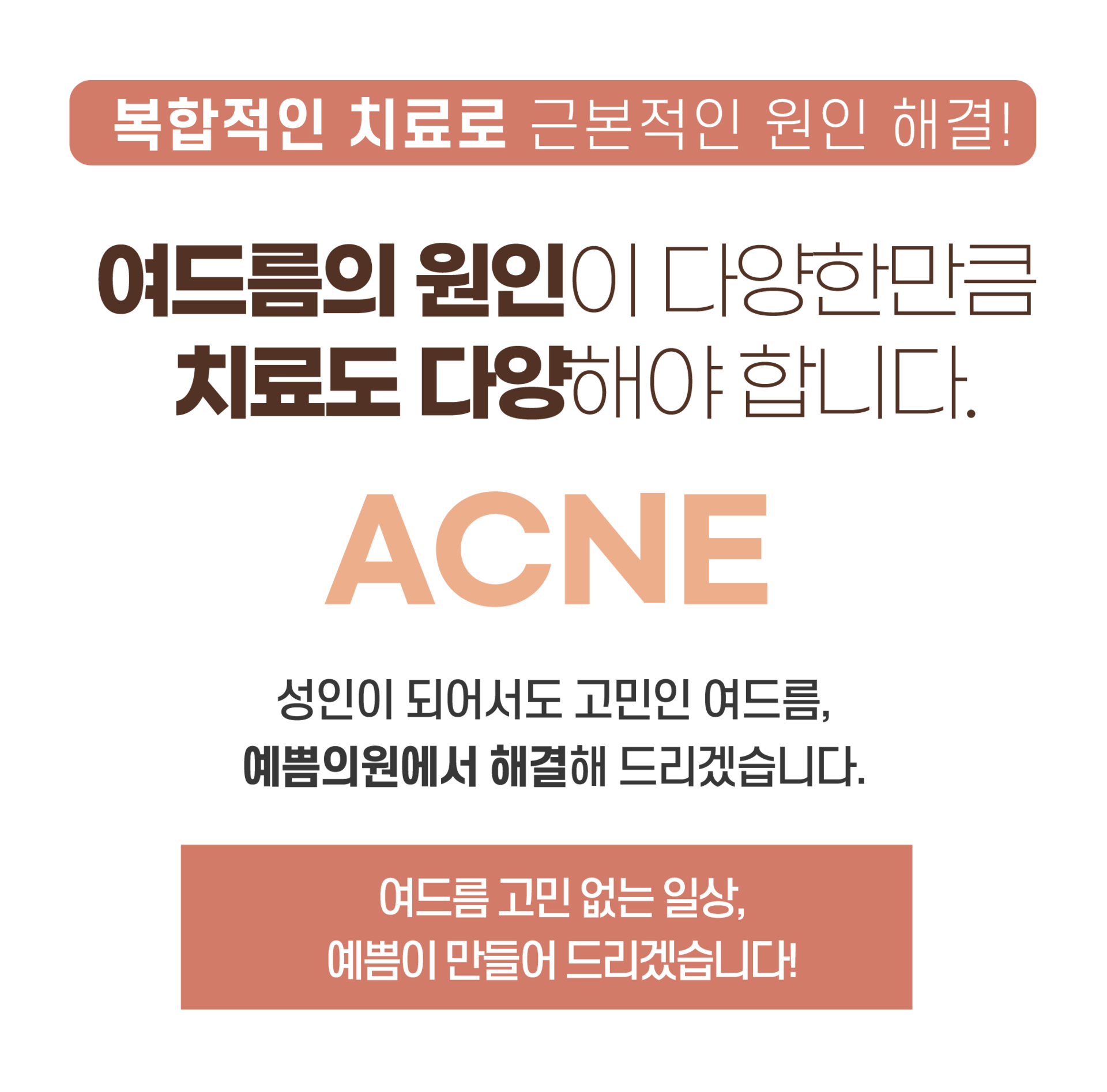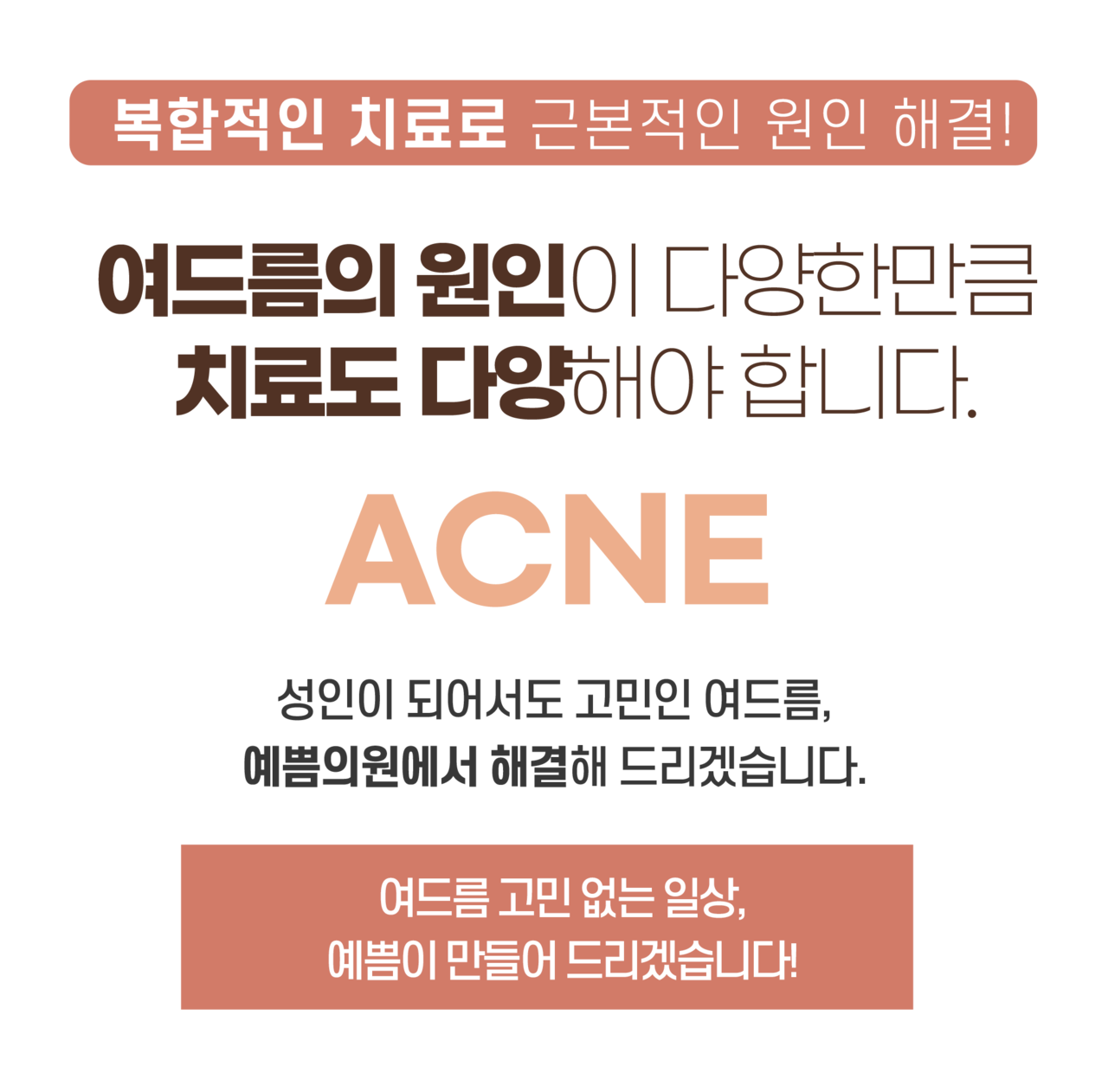 여드름은 청소년기 뿐만 아니라 성인여드름도 문제가 되고 있습니다. 다양한 원인을 정확하게 파악하여 효과적인 치료를 선사합니다.